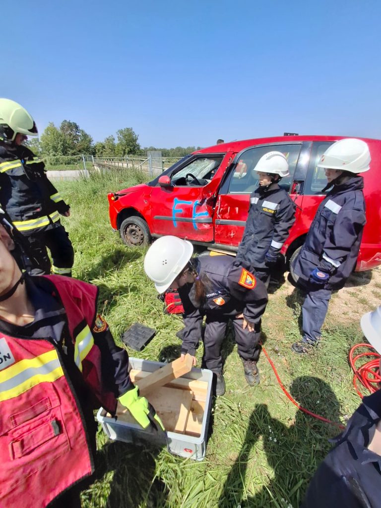 Der erste Einsatz war ein Verkehrsunfall mit zwei PKW und zwei verletzten Personen. Die Jugendmitglieder übernahmen dabei die Befreiung der Betroffenen und sammelten wertvolle Erfahrungen im Umgang mit technischem Rettungsgerät.