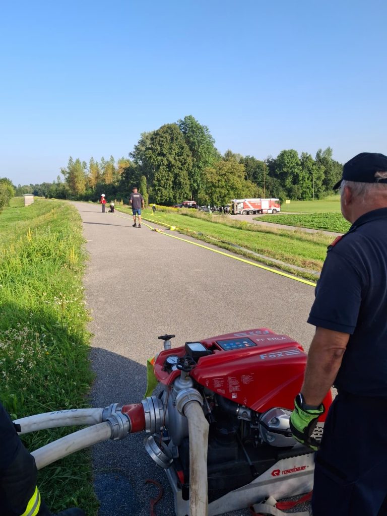 Im zweiten Einsatz ging es um die Wasserversorgung für das Tanklöschfahrzeug der Feuerwehr St. Valentin. Hierbei kam eine Tragkraftspritze zum Einsatz, um die Löschwasserversorgung sicherzustellen.