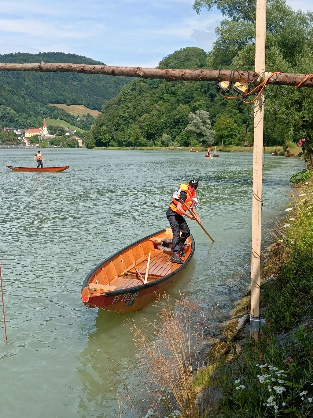 Am Samstag, dem 22. Juli 2023, nahm die Feuerwehr St. Pantaleon mit insgesamt 31 Zillenbesatzungen (einmännisch und zweimännisch) am Bezirksbewerb des Wasserdienstes in Neustadl teil. Dabei mussten die Teilnehmer einerseits das richtige Knüpfen wichtiger Knoten und das richtige Werfen von Rettungsringen meistern und andererseits ihr Können in der Zille unter Beweis stellen. Die Besatzung Mathias Lehenbauerund Herbert Eglseerkonnte in der Kategorie Silber mit Alterspunktenden3. Platzholen. Außerdem konnte eine Gruppe der FF St. Pantaleon in der Mannschaftswertung den5. Platzerreichen. Gratulation zu den tollen Leistungen!