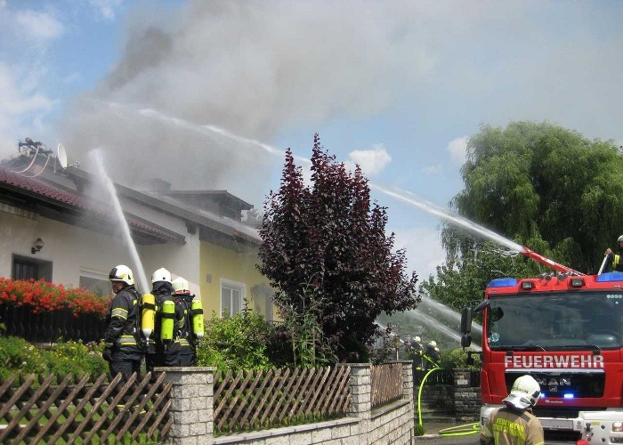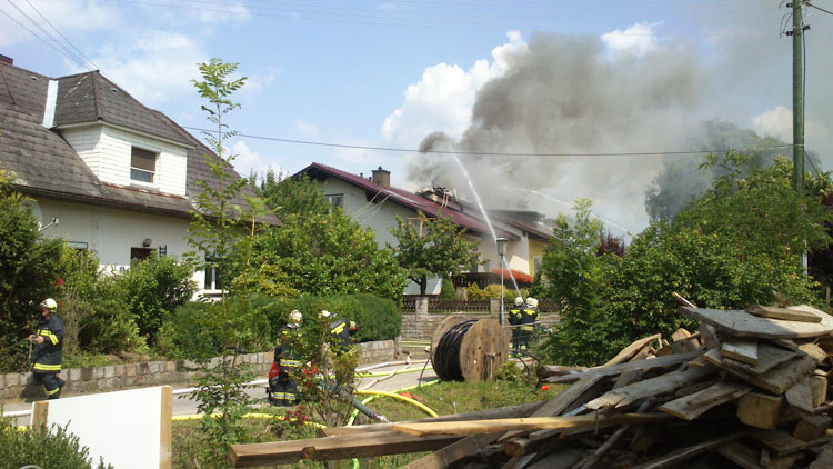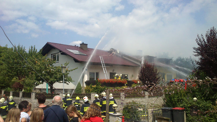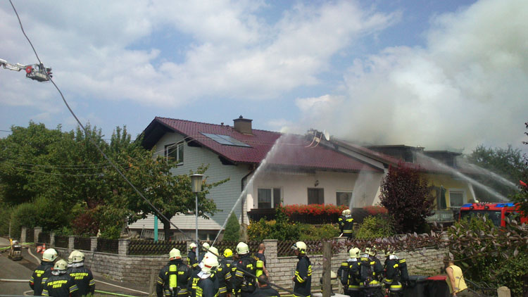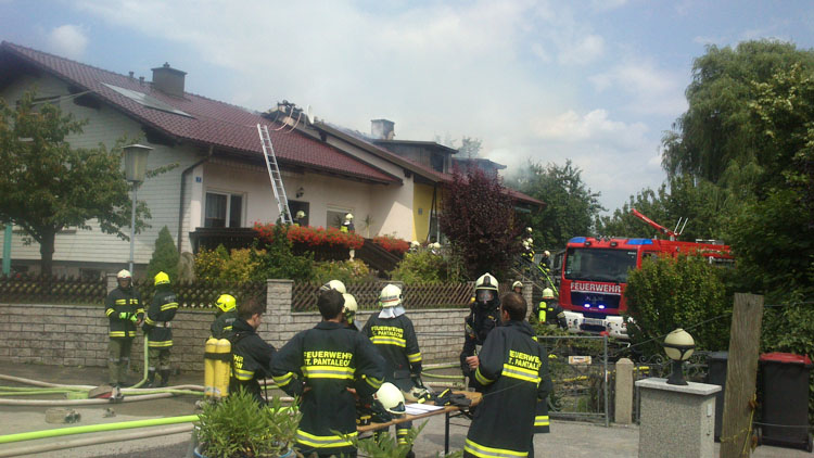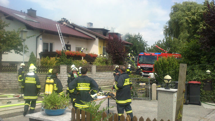 14. Juli 2013 Kurz vor 14:30 Uhr gingen mehrere Notrufe über einen Dachstuhlbrand in St.Pantaleon ein. Von der Bereichsalarmzentrale Amstetten wurden die Freiwilligen Feuerwehren St. Pantaleon, Ennsdorf, Erla, Rems und die Feuerwehr Stadt St. Valentin zum Einsatzort alarmiert. Durch ein Stromkabel im Dachbereich musste auch der EVN-Notdienst alarmiert werden um die Stromabschaltung durchzuführen. Laut Notrufmeldung befand sich auch eine Person auf dem Dachboden und versuchte den Brand mittels Feuerlöschern einzudämmen. Binnen weniger Minuten stand der Dachstuhl im Vollbrand. Beim Eintreffen der ersten Einsatzkräfte war die Person glücklicherweise schon aus dem Gefahrenbereich. Die Feuerwehren begannen unter schwerem Atemschutz sofort mit der Brandbekämpfung. Auch die angrenzenden Wohngebäude wurden geschützt um eine Ausbreitung zu verhindern. Nach 2 Stunden hatten die Freiwilligen Feuerwehren den Brand unter Kontrolle.
