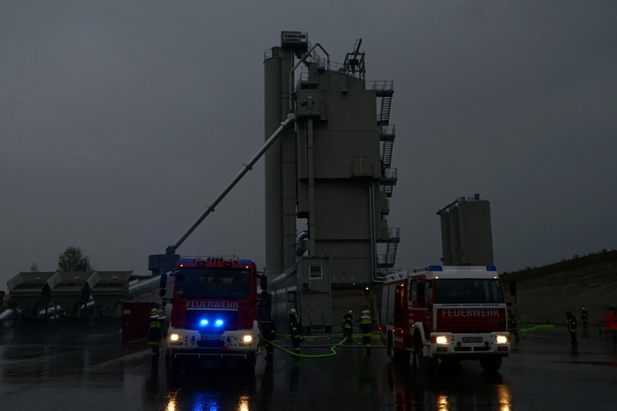 Am 17. April fand die monatliche Übung bei der Firma Hasenöhrl statt. Dabei wurde der Brandfall des neuen firmeneigenen Asphaltwerk beübt.