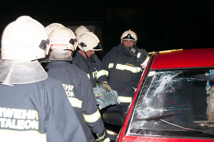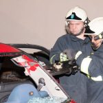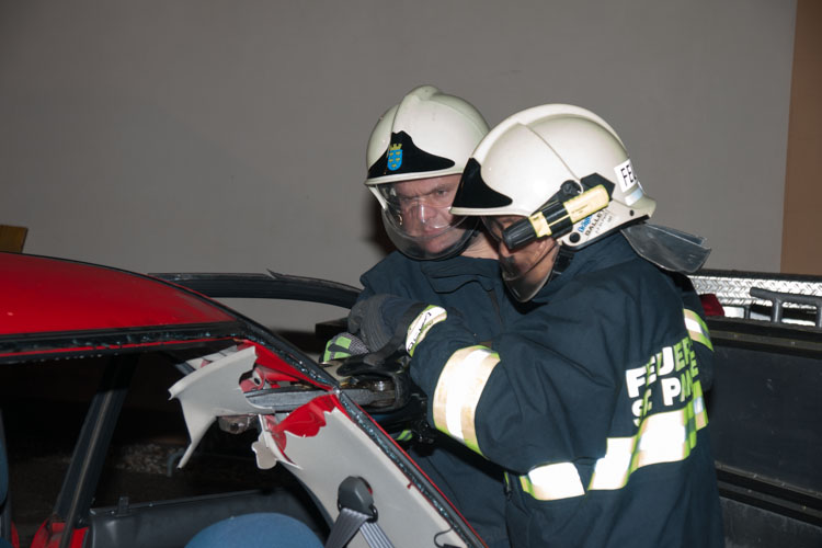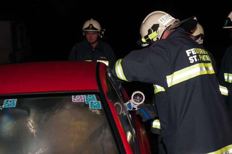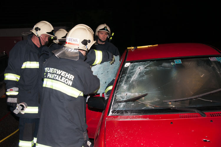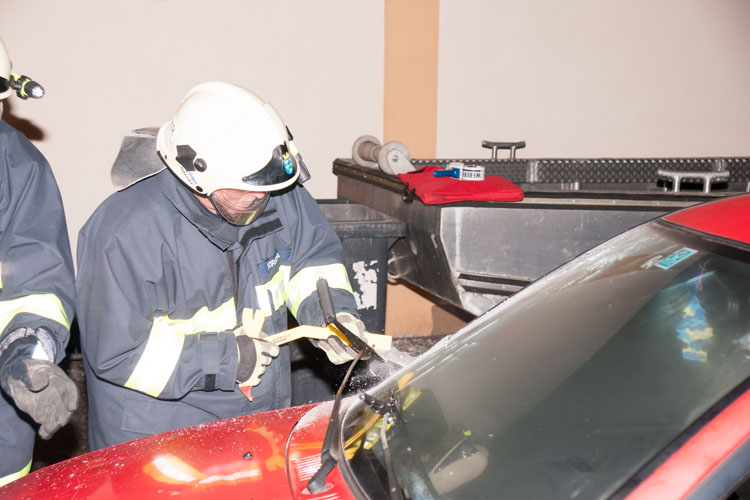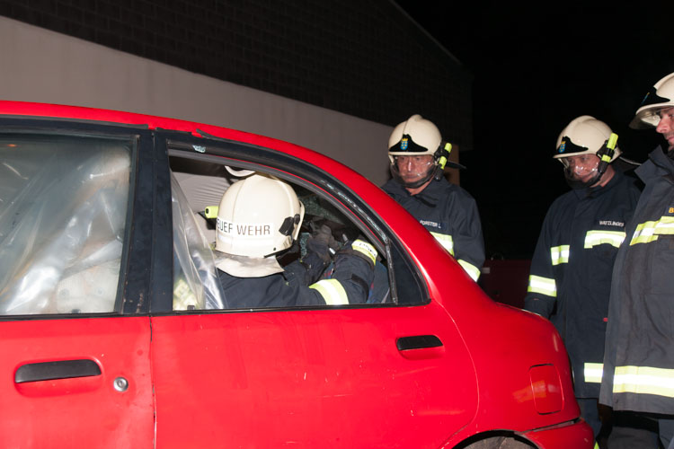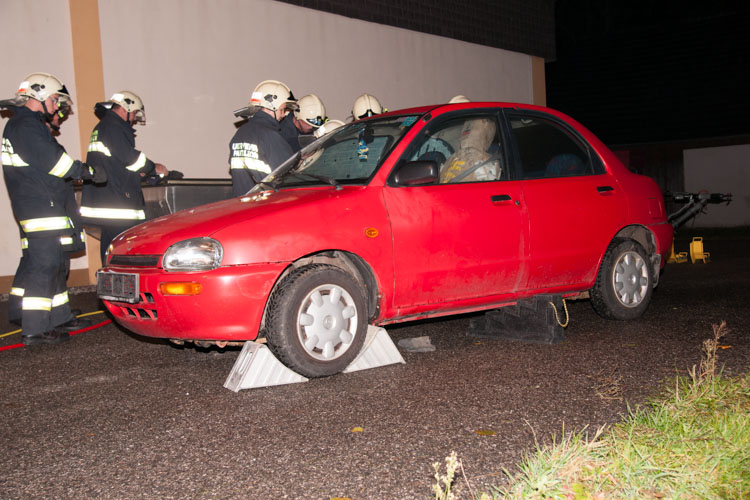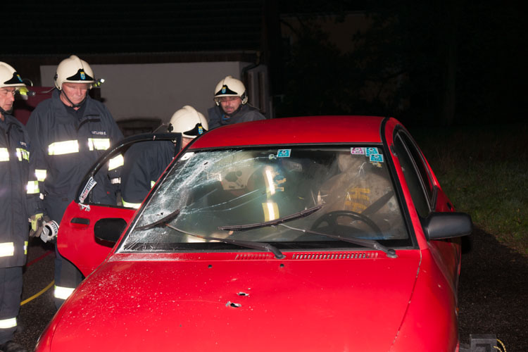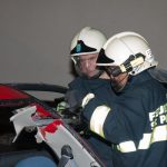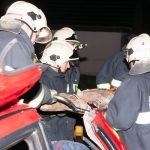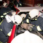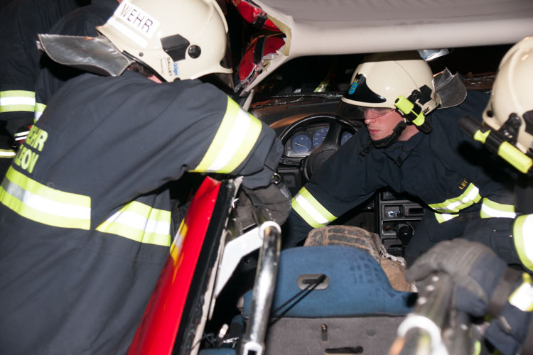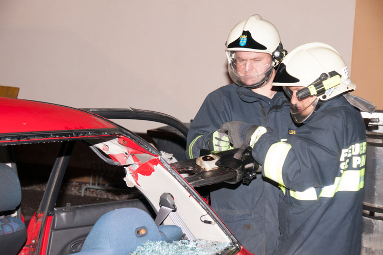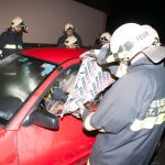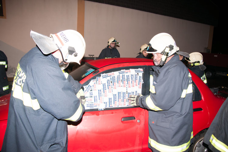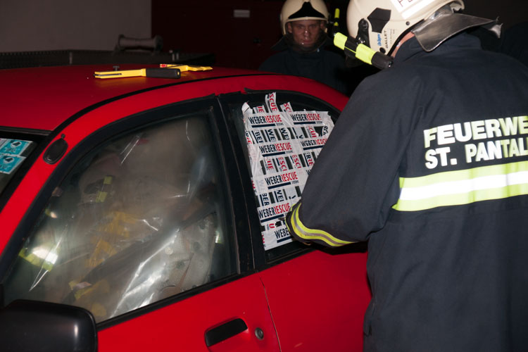 Rescue Days Teilnehmer 2013 schulten die eigenen Kameraden und das neu angeschaffte Glasmanagement an einem Übungsauto. Weiteres wurde auch das Anlegen eines Stifnecks und die Verwendung eines Inneren Retters bei einem Verkehrsunfall geübt.