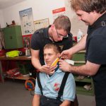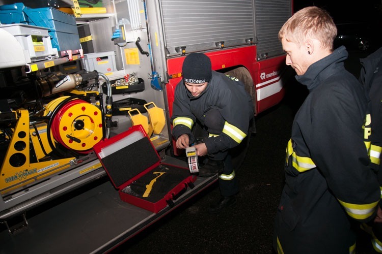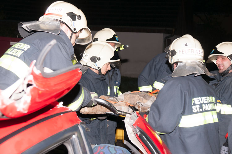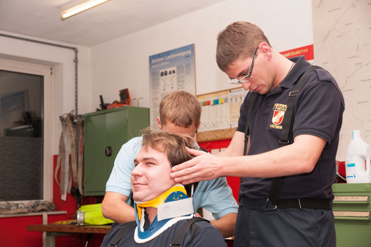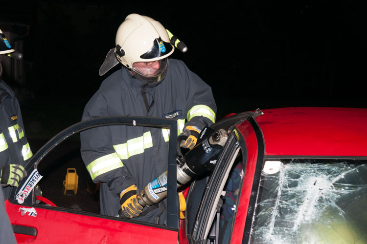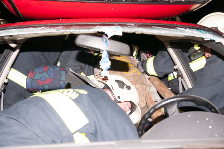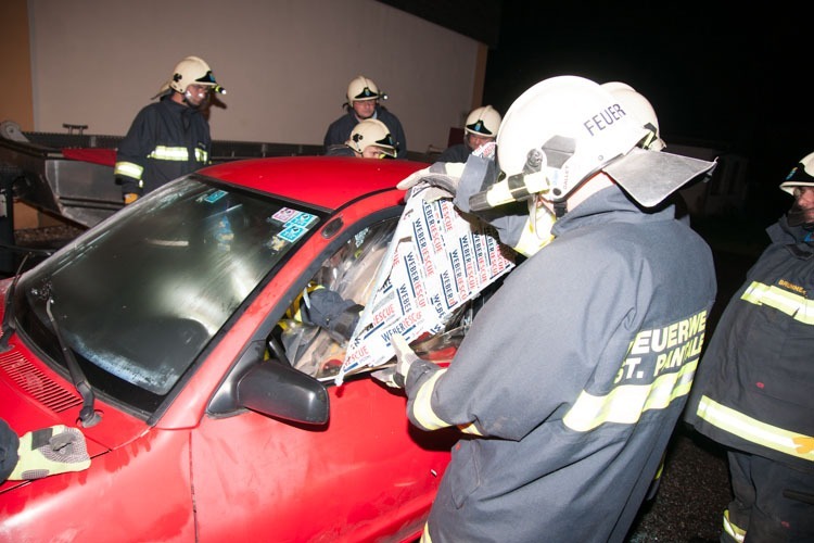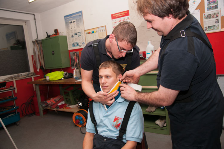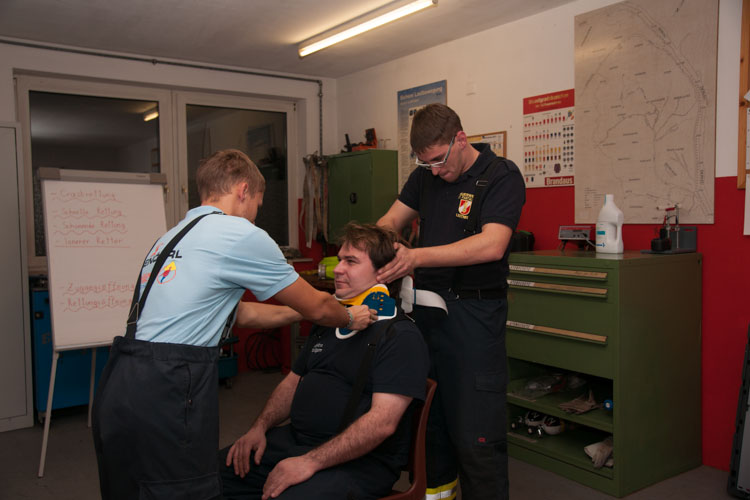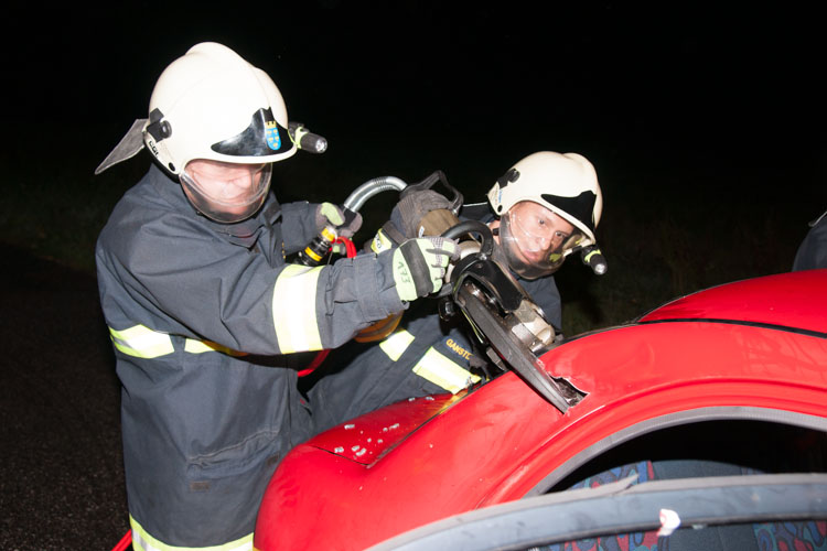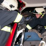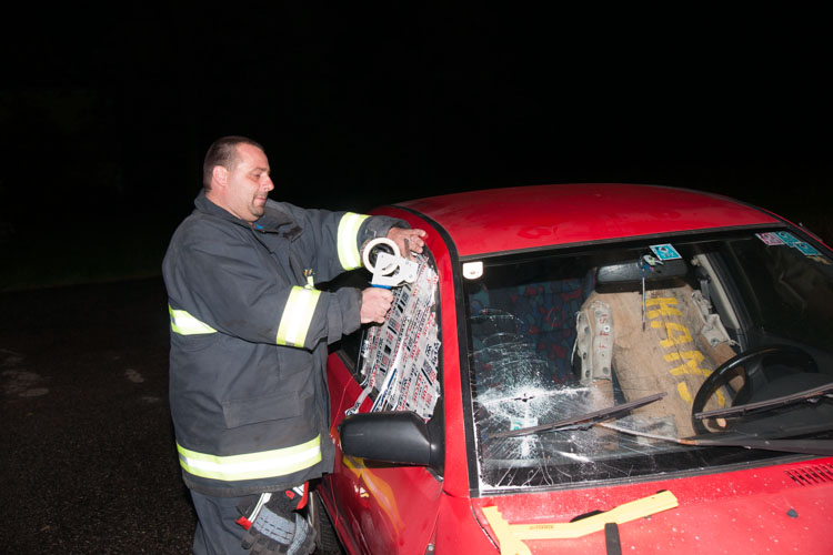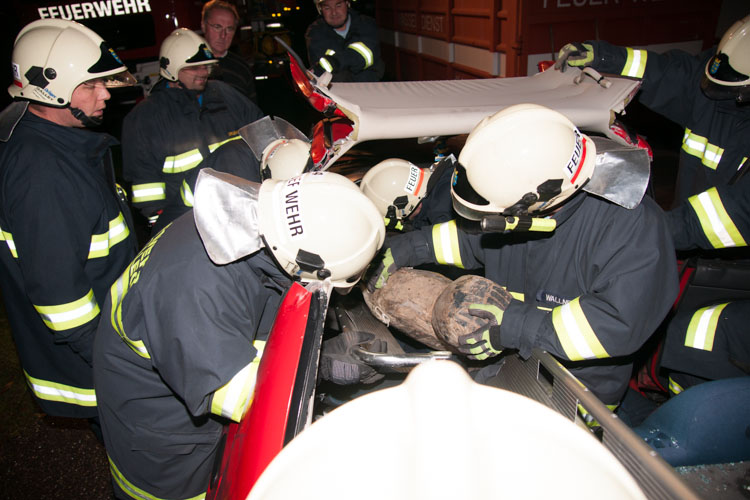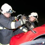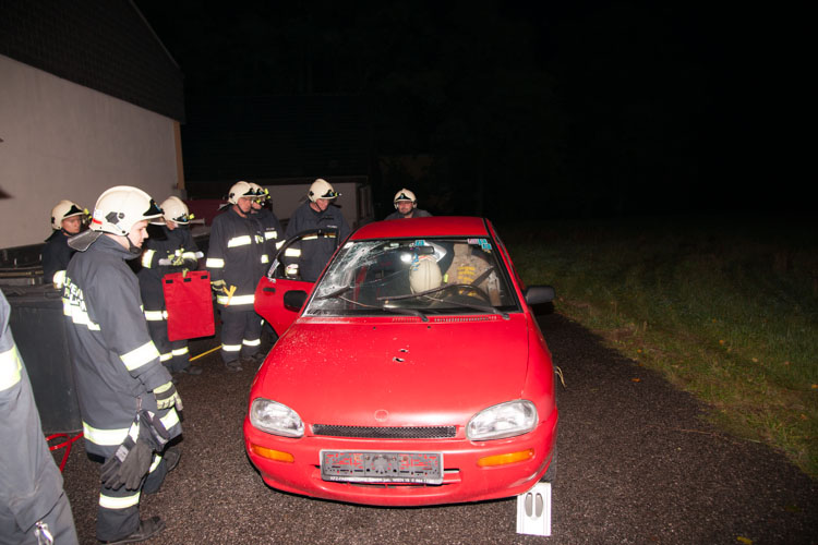 Rescue Days Teilnehmer 2013 schulten die eigenen Kameraden und das neu angeschaffte Glasmanagement an einem Übungsauto. Weiteres wurde auch das Anlegen eines Stifnecks und die Verwendung eines Inneren Retters bei einem Verkehrsunfall geübt.