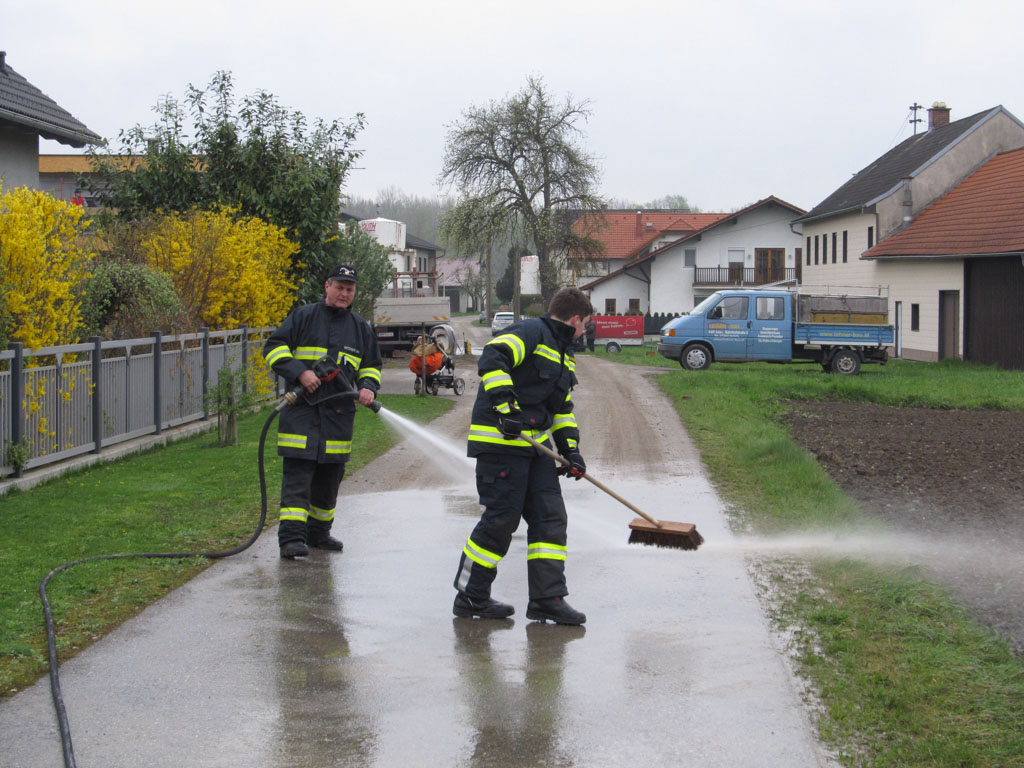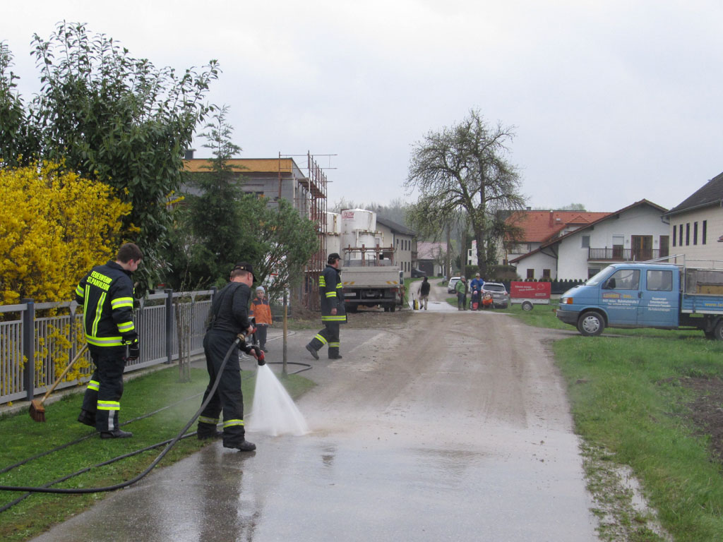 09. April 2016 Am 9.4.2016 wurde die Strasse in Albing durch die FF St. Pantaleon gereinigt. Grund war eine schwere Verunreinigung nach Baggerungen.