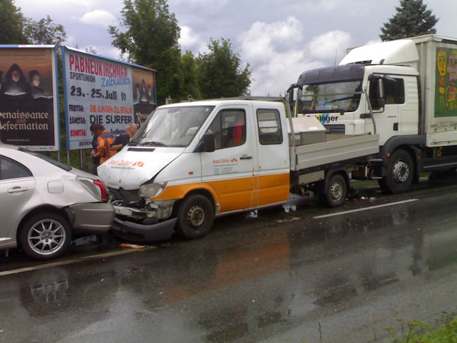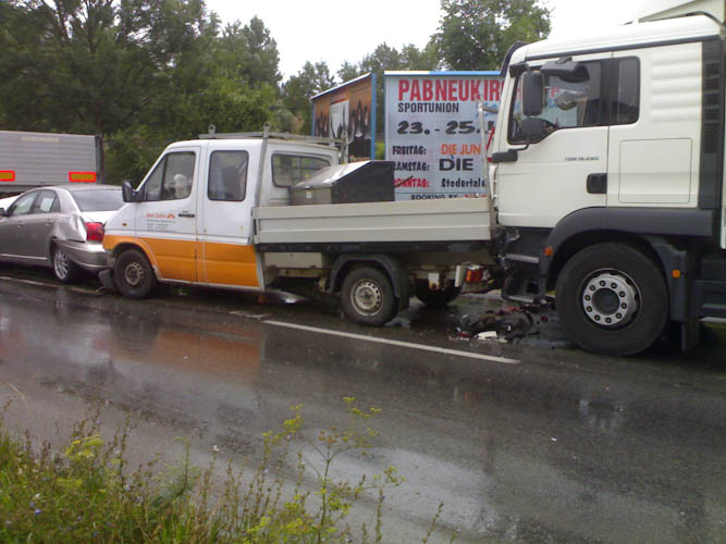 29. Juli 2010 Binden einer Ölspur, Straßenreinigung und freimachen des Verkehrsweges nach einem Auffahrunfall.