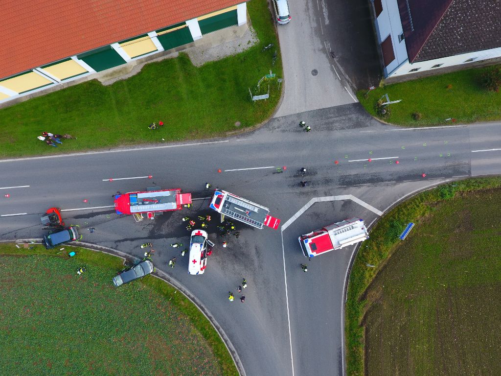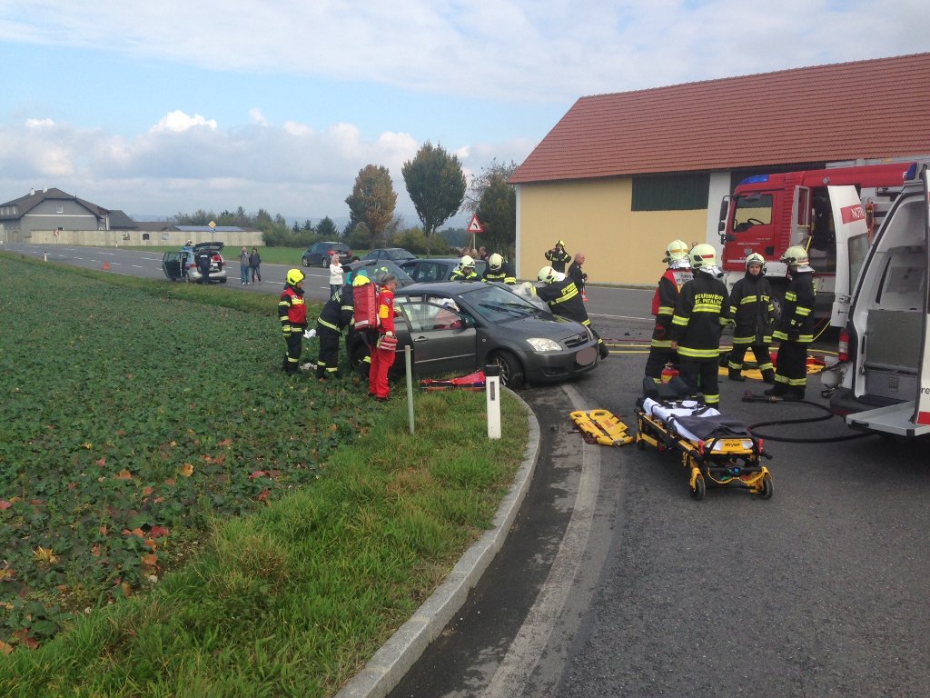 26. Oktober 2016 SANKT PANTALEON. Gegen 13 Uhr wurden die Einsatzkräfte am Nationalfeiertag zu einem schweren Verkehrsunfall alarmiert. Im Kreuzungsbereich der B 123a mit der L6249 waren zwei Fahrzeuge zusammengestoßen. Die Feuerwehr musste eine Person aus dem Fahrzeug befreien. Nach der Erstversorgung an der Unfallstelle wurde die verletzte Frau mit dem Rettungshubschrauber in den Med Campus III nach Linz geflogen. (Textquelle: www.fotokerschi.at)