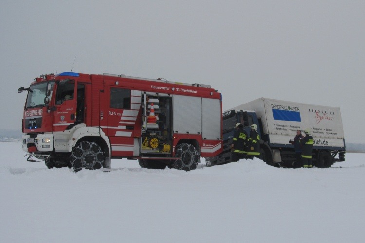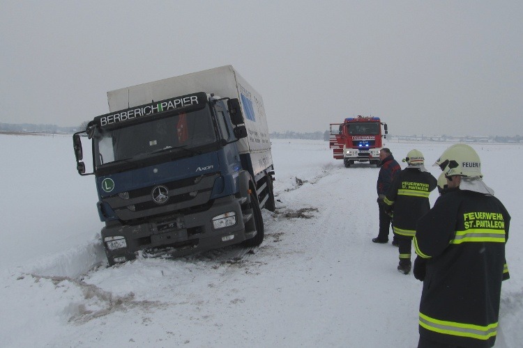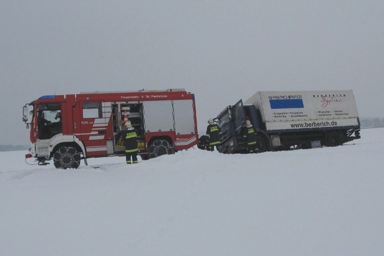18. Jänner 2013 Innerhalb von 24 Stunden wurde die FF St. Pantaleon an den gleichen Einsatzort zu einer LKW-Bergung gerufen.