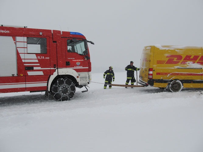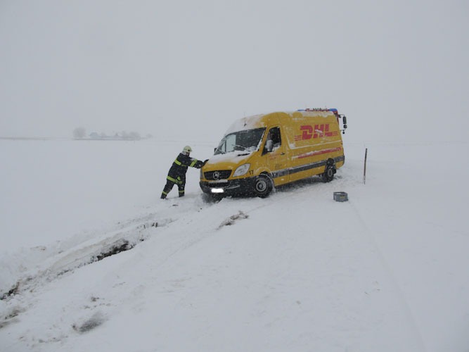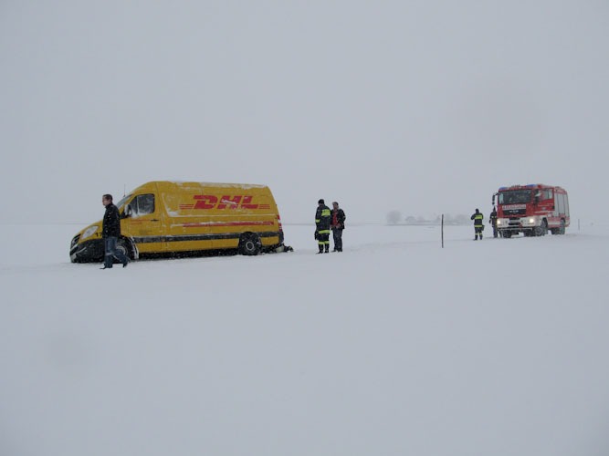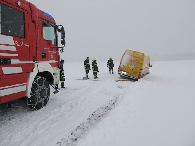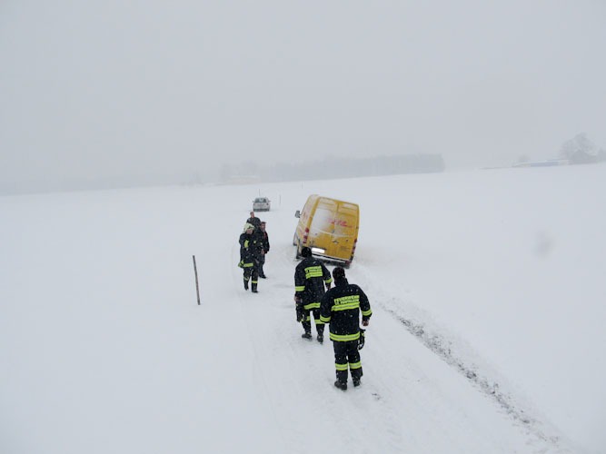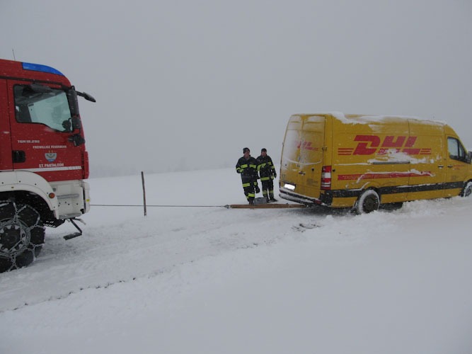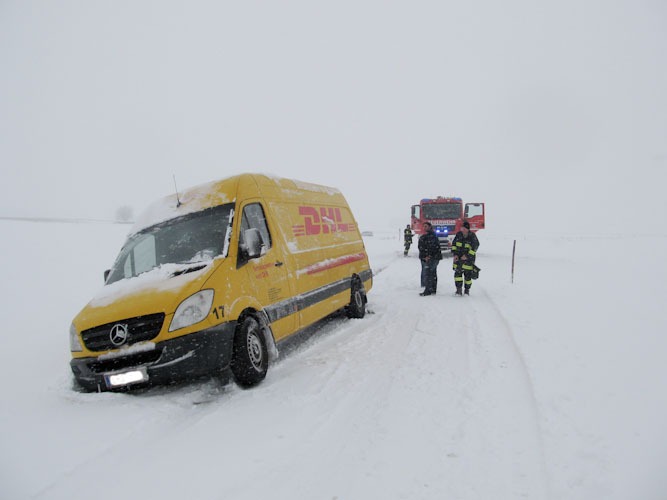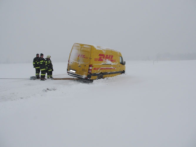 17. Jänner 2013 Die Bergung eines Paketdienstwagens erfolgte mittels Seilwinde.