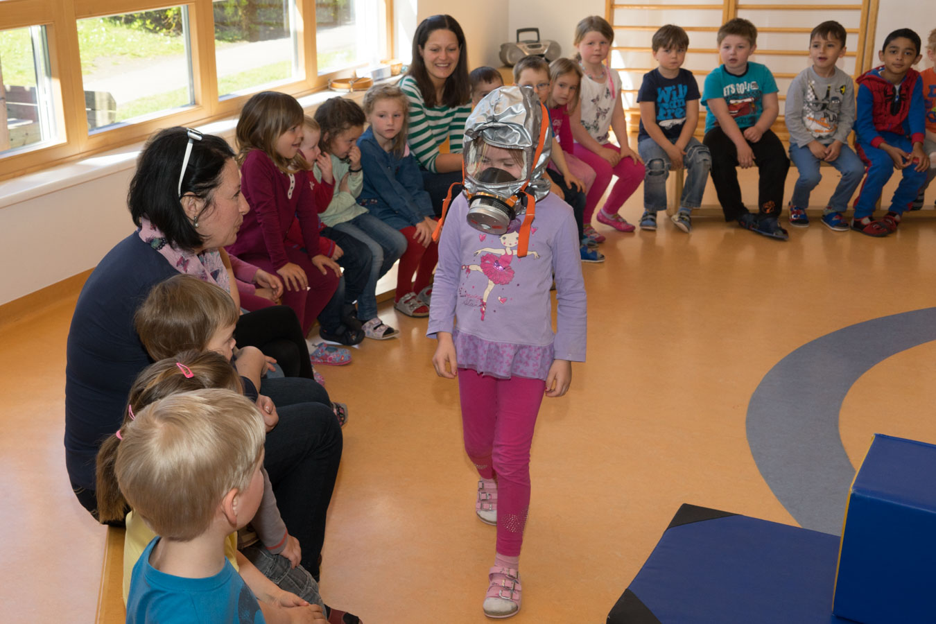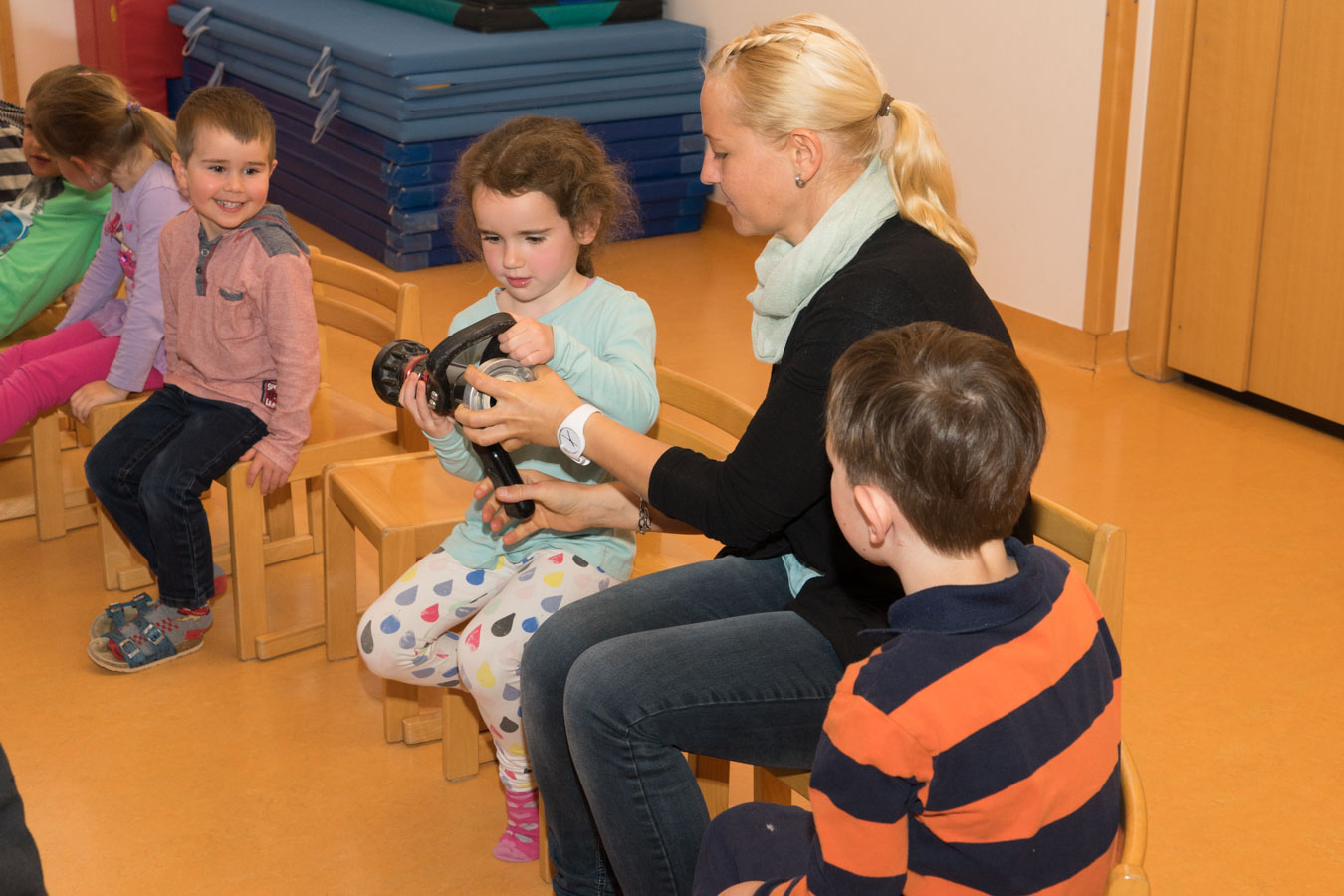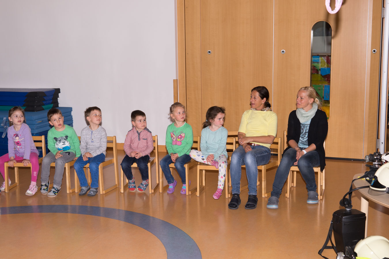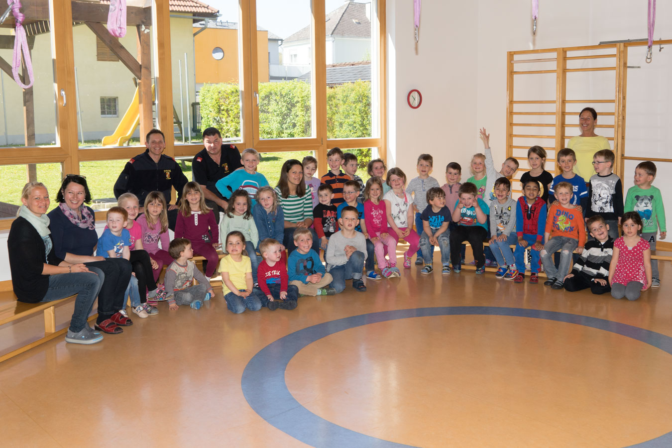 Als Vorbereitung auf die Einsatzübung im Kindergarten St. Pantaleon besuchten wir die Kinder um sie mit den Aufgaben und der Ausrüstung der Feuerwehr vertraut zu machen.