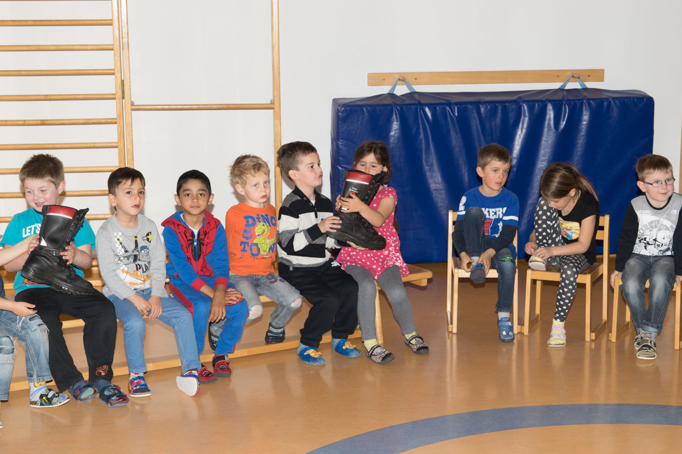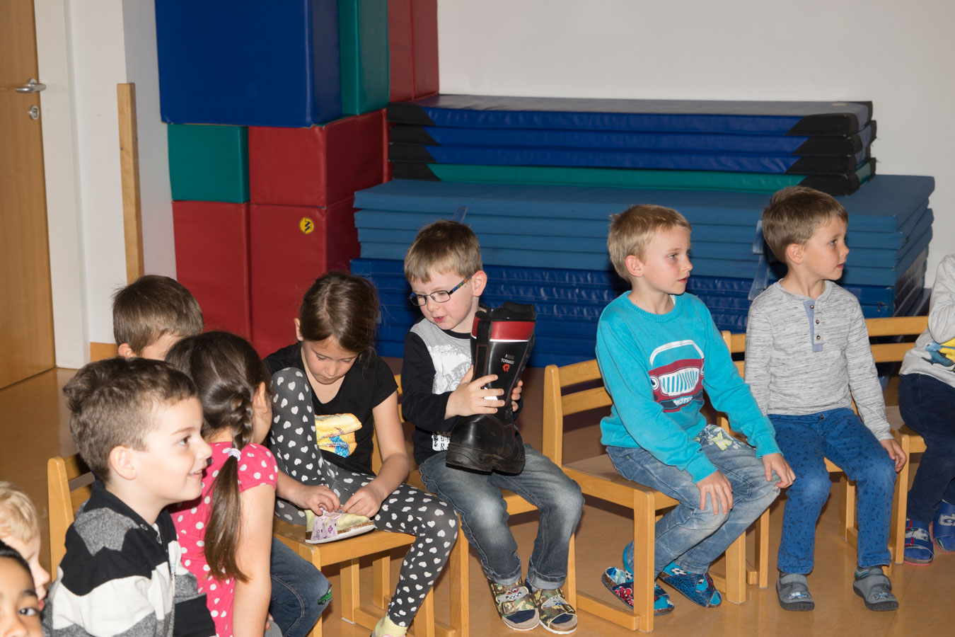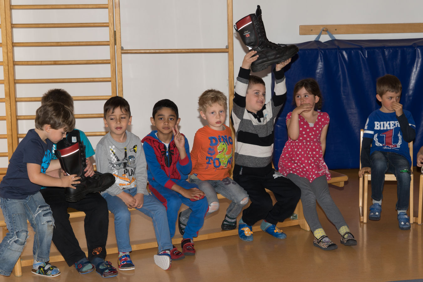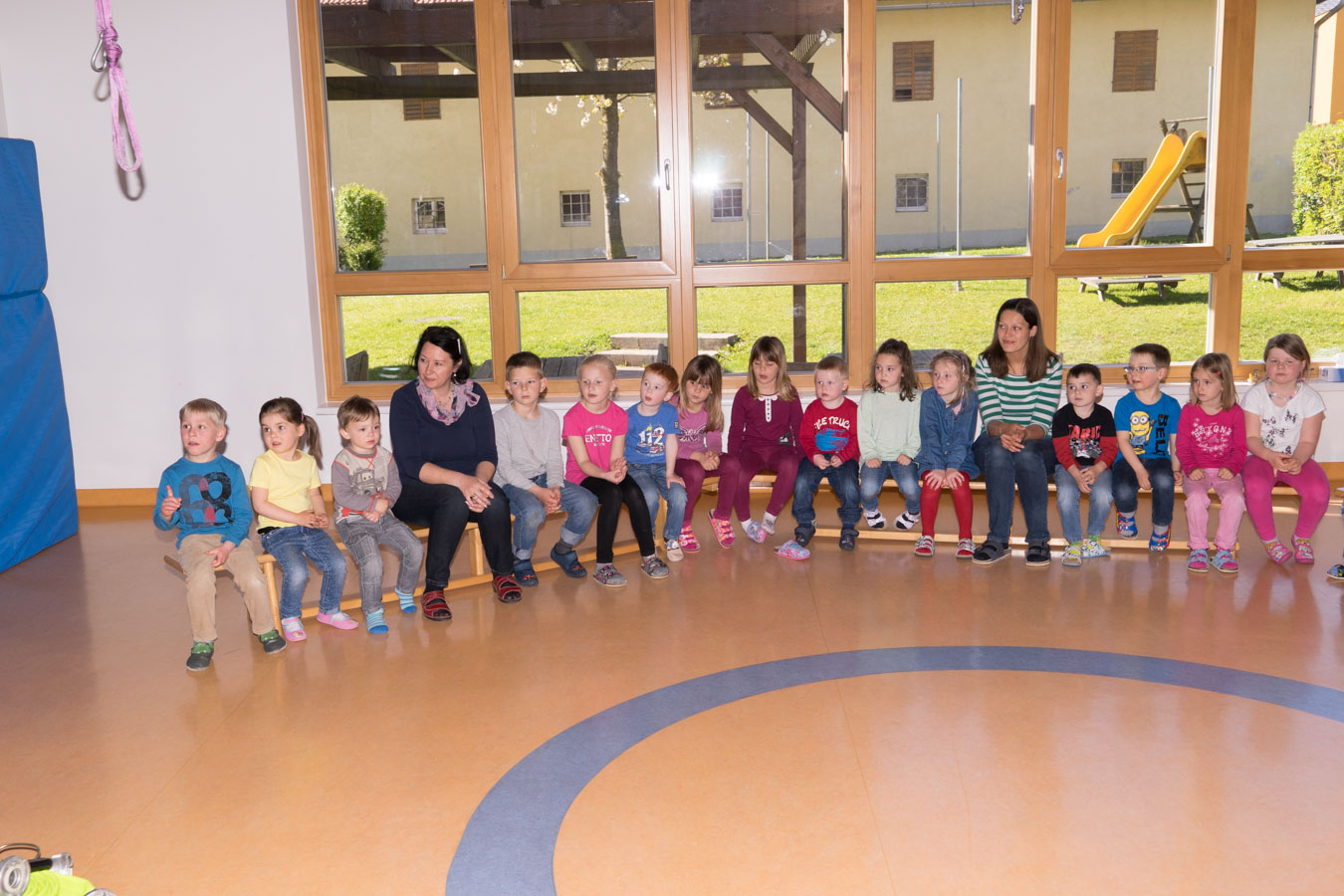 Als Vorbereitung auf die Einsatzübung im Kindergarten St. Pantaleon besuchten wir die Kinder um sie mit den Aufgaben und der Ausrüstung der Feuerwehr vertraut zu machen.