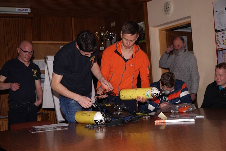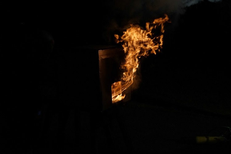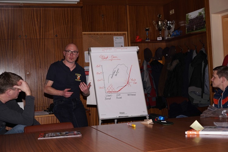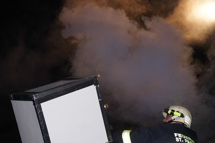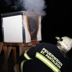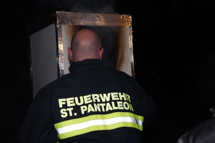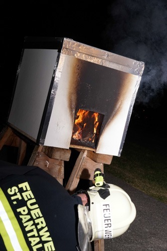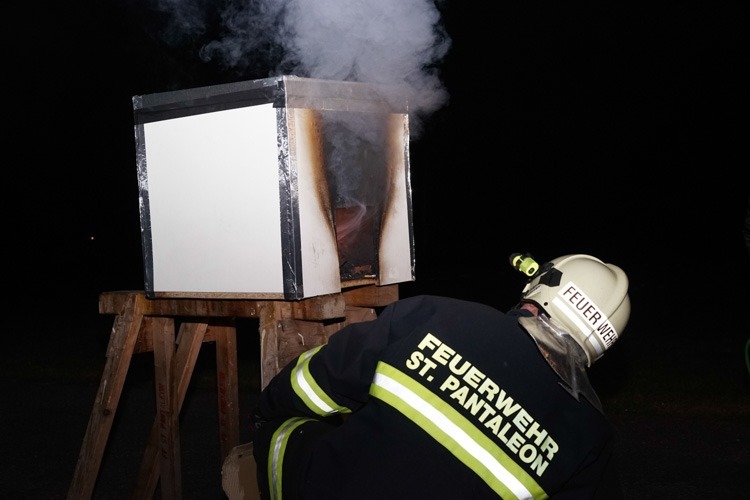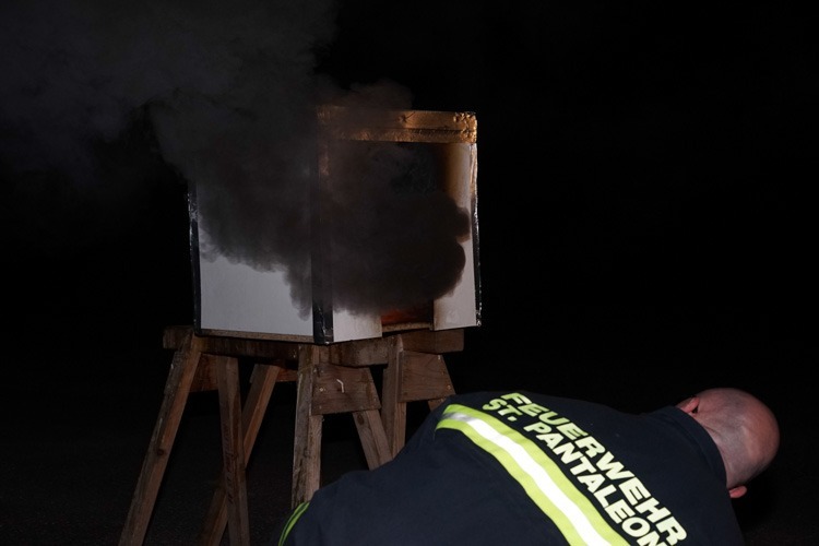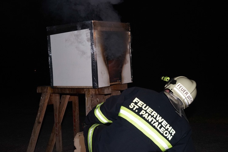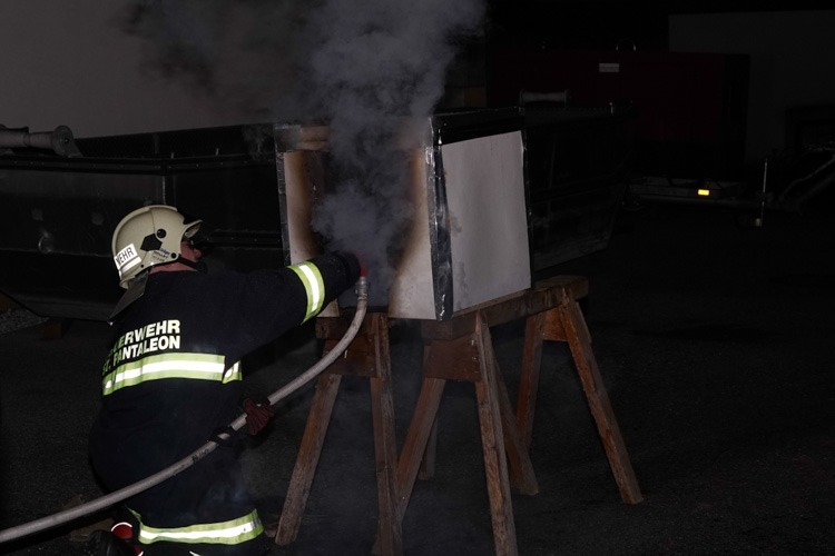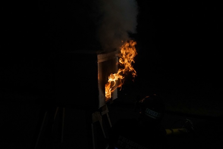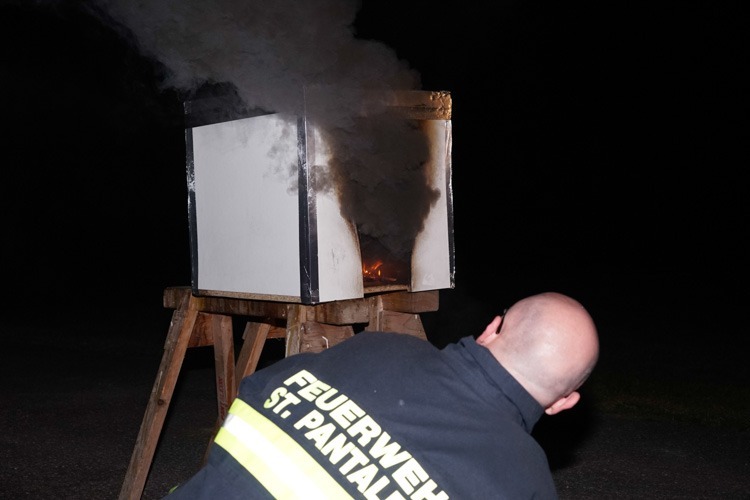 Schulungthemen: Richtige Handhabung im Einsatz Atemschutz. Anhand einer Brandsimulationsbox wurden verschiedene Gefahren im Feuerwehreinsatz realitätsnah präsentiert.